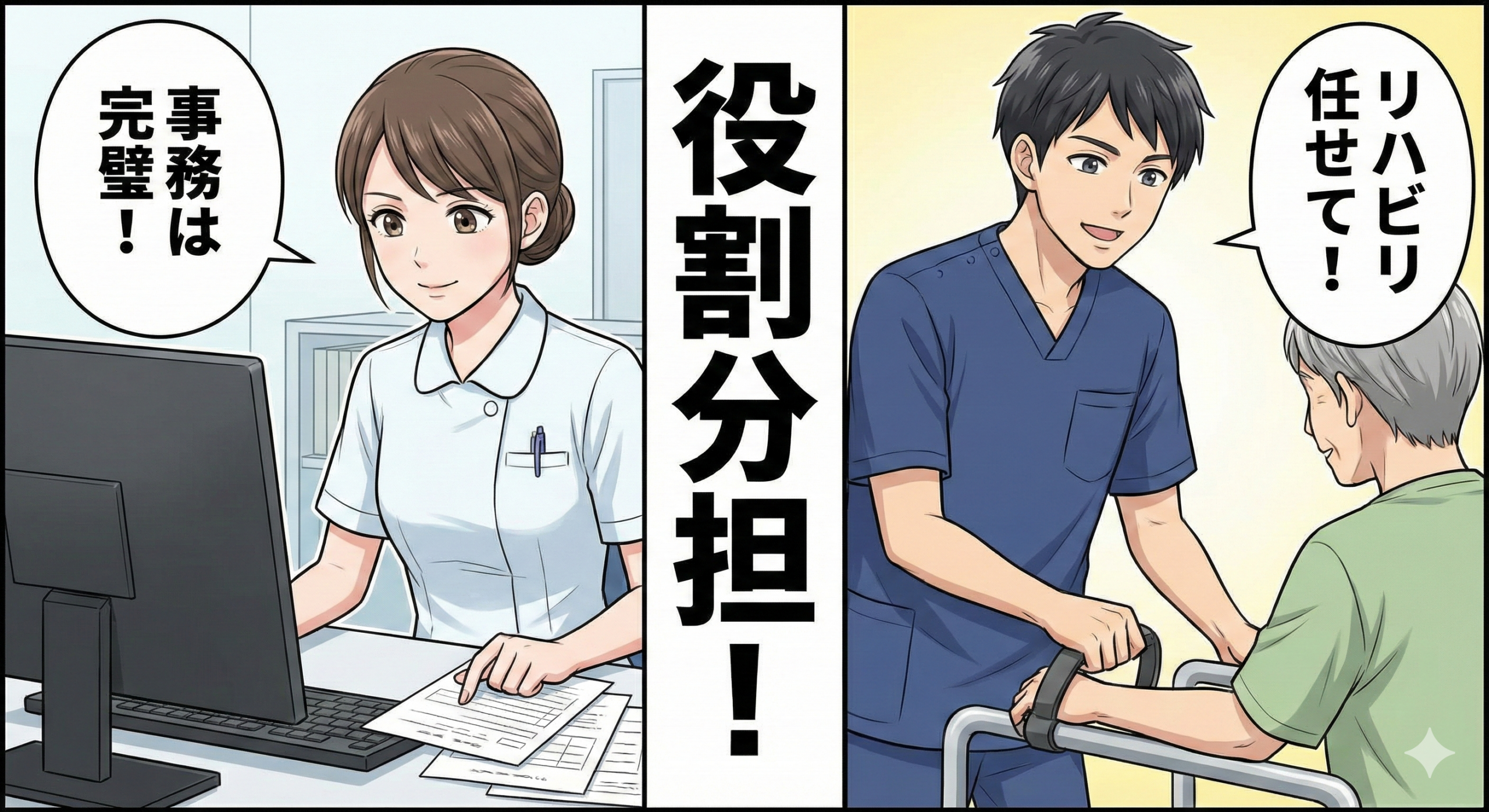 事務・医師・理学療法士(PT)の連携がスムーズなほど、患者様の満足度は上がります。